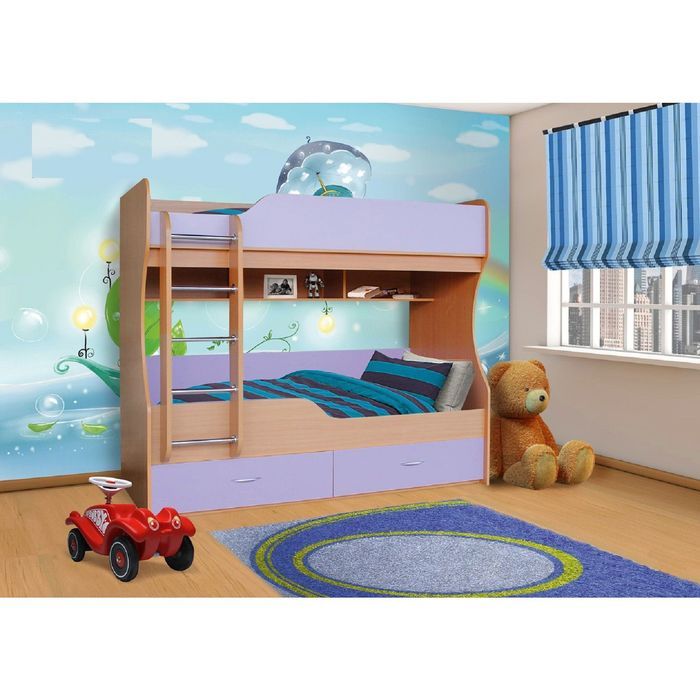 Двухъярусная модель будет отличным вариантом для обустройства детской комнаты. Кровать подойдёт для ребятишек дошкольного и младшего школьного возраста. Экологически чистая и функциональная, она обеспечит здоровый и крепкий сон.