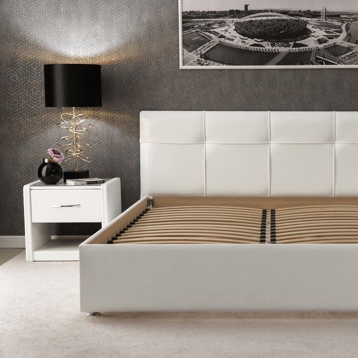 - Комплектация: каркас, ортопедическое основание, выдерживающее плавающую нагрузку до 300 кг.