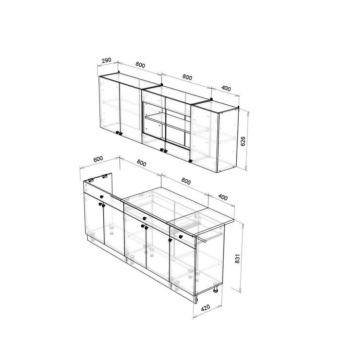 - Навесной шкаф (Ш х В х Г): 800 х 626 х 290 мм.