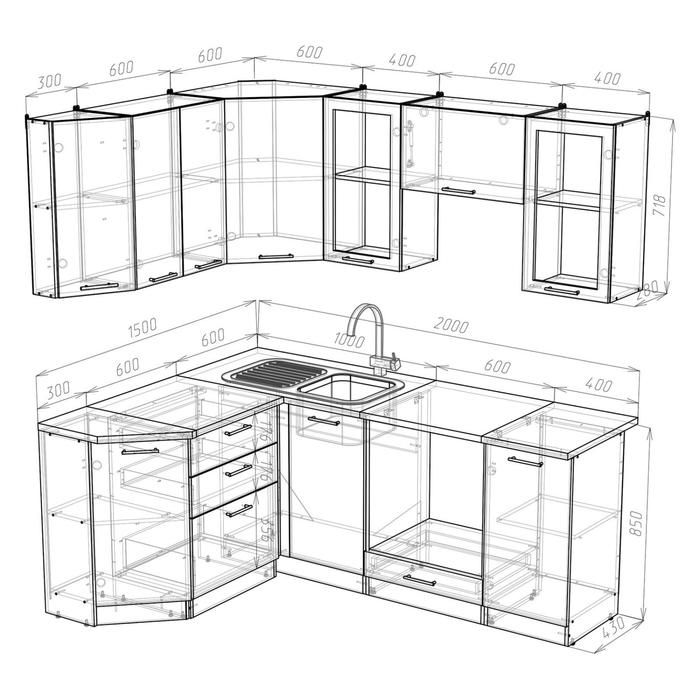 К данному кухонному гарнитуру подойдёт решётка посудосушителя шириной 600 мм.