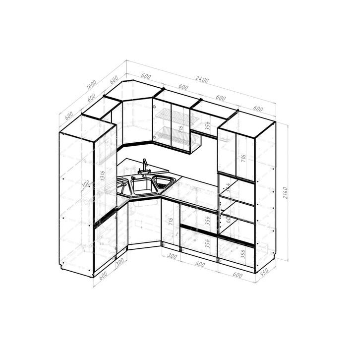 Размер кухни:2400 х 1800