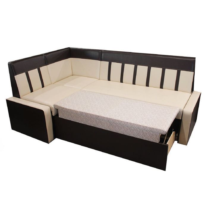 Конструкция мебели продумана до мелочей. Модель отлично впишется в интерьер: днём такой уголок станет частью уютной обеденной зоны, а вечером превратится в полноценное спальное место. Трансформация из дивана в кровать происходит с помощью механизма «Дельфин».