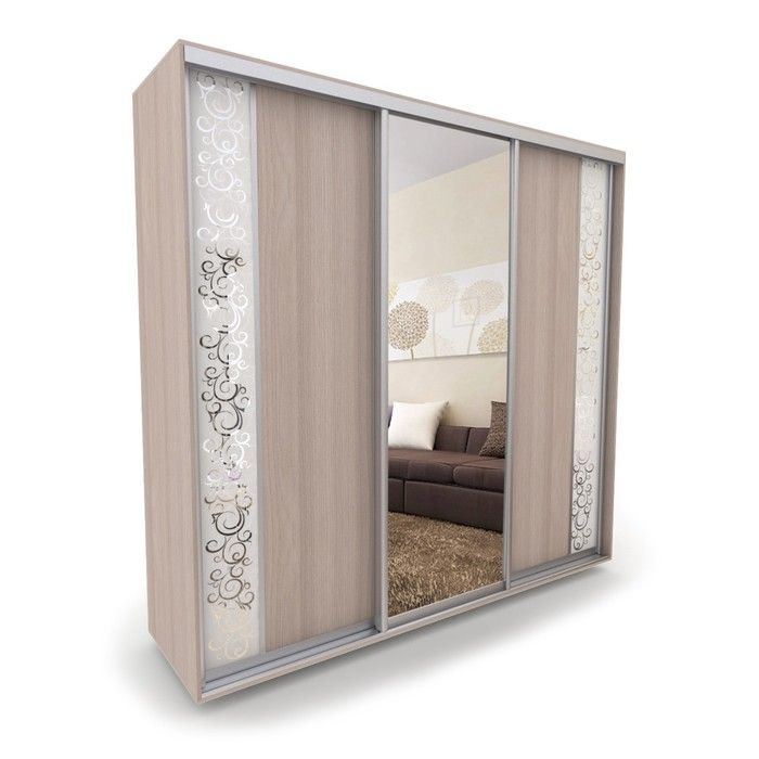 Двери купе декорированы зеркалами с матовыми рисунками, которые нанесены методом пескоструйной обработки.