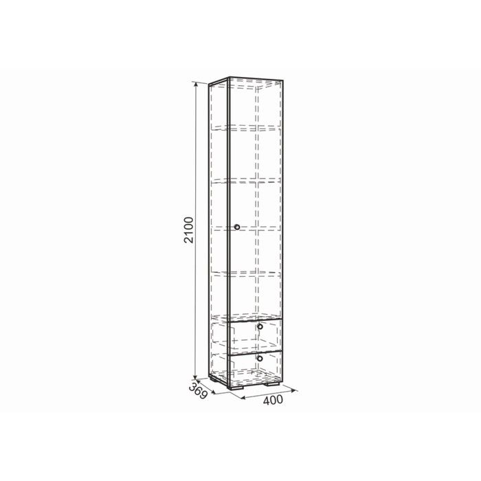 Шкаф включает 4 закрытые полки и 2 выкатных ящика.