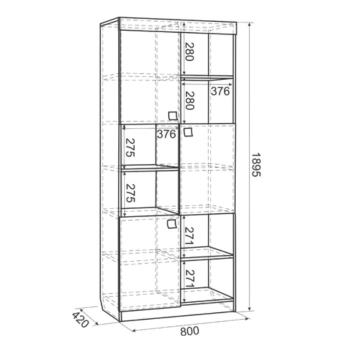 Расстояние между полками, мм:271, 275, 280