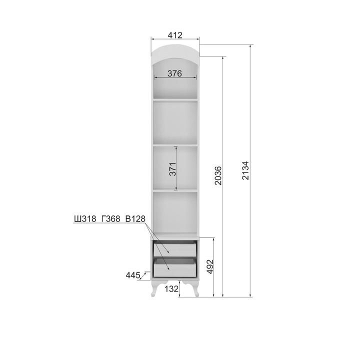 - Открытые полки, выдвижные ящики, 2 комплекта, на шариковых направляющих глубиной 350 мм