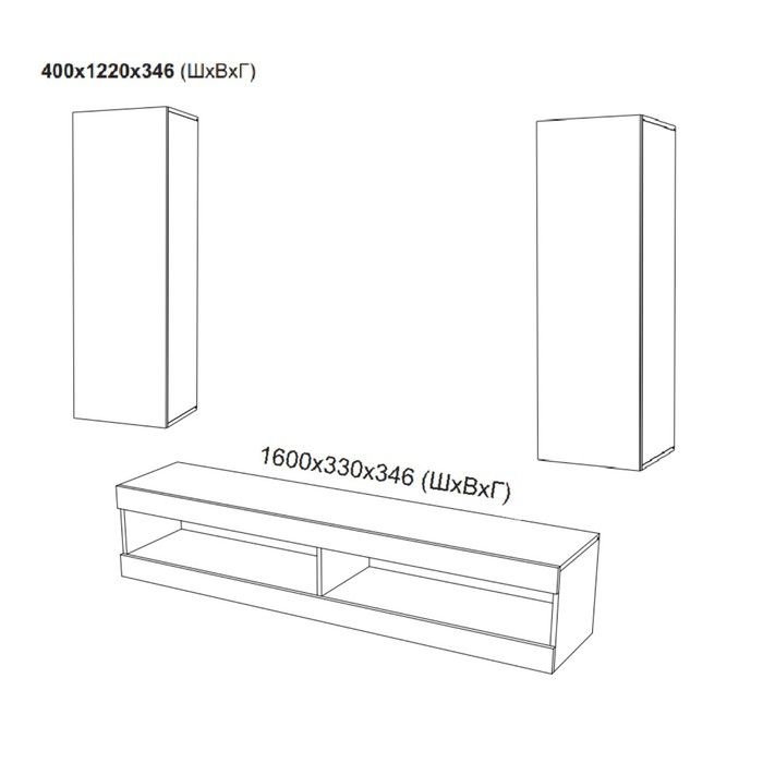 - Вертикальные модули 2 шт. (Ш x Г x В): 400 x 346 x 1 220 мм.