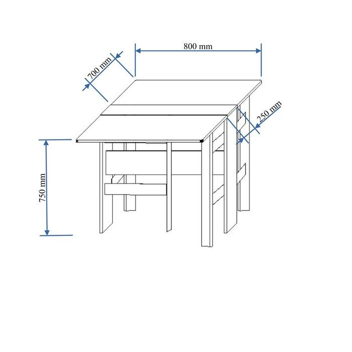 Размеры в сложенном виде: 250 х 800 х 720 мм.