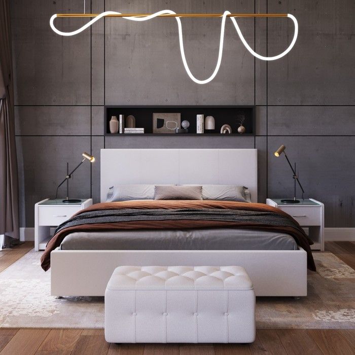 Особенности:С мягким изголовьем, Кровать в ткани/экокоже