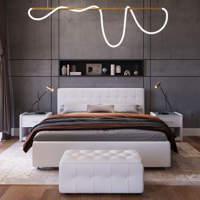 Особенности:Кровать в ткани/экокоже, С мягким изголовьем