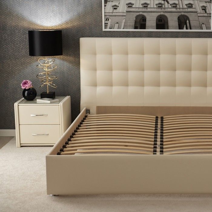 Кровать оснащена встроенным деревянным основанием, которое прикреплено к каркасу и имеет 6 (или 8 в зависимости от размера) дополнительных опор в центре основания и по углам. Такая конструкция придаёт дополнительную жёсткость кровати, а также позволяет избежать шума и внутренних повреждений царг.
