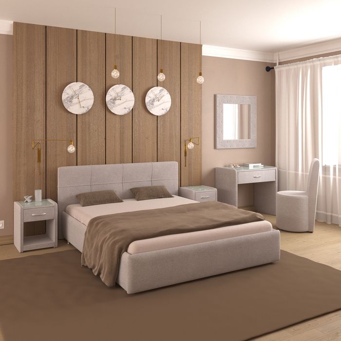 Особенности:Кровать в ткани/экокоже, С мягким изголовьем