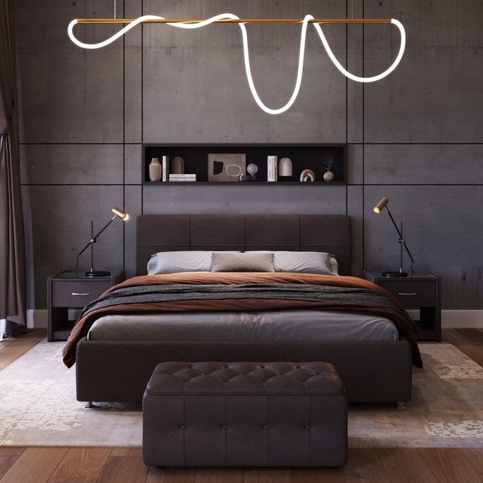 Особенности:С мягким изголовьем, Кровать в ткани/экокоже