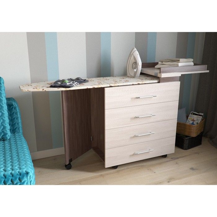 Каркас гладильной доски выполнен из ДСП, отверстий для выхода пара нет, крепление на уголки саморезамию.