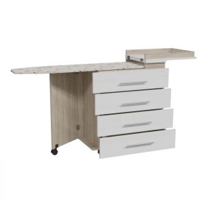Каркас гладильной доски выполнен из ДСП, отверстий для выхода пара нет, крепление на уголки саморезамию.
