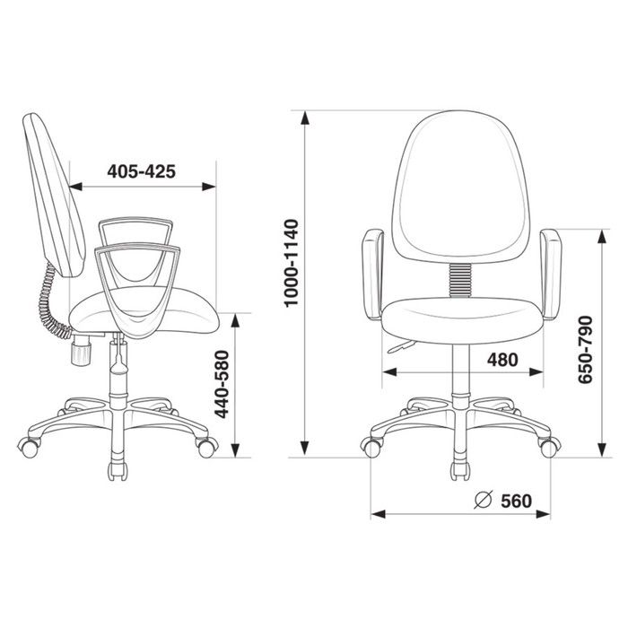 Высота спинки, мм:560