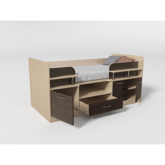 Уголок школьника №7 — это кровать с полноценным спальным местом и множеством шкафчиков и полочек. С такой кроватью все игрушки будут всегда на месте, а любимые книжки под рукой.