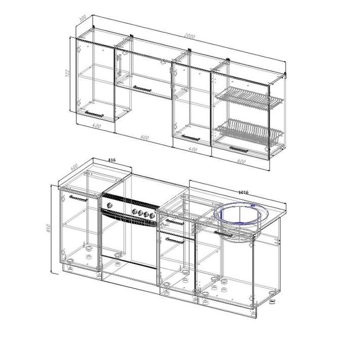 - Глубина верхних модулей: 300 мм.