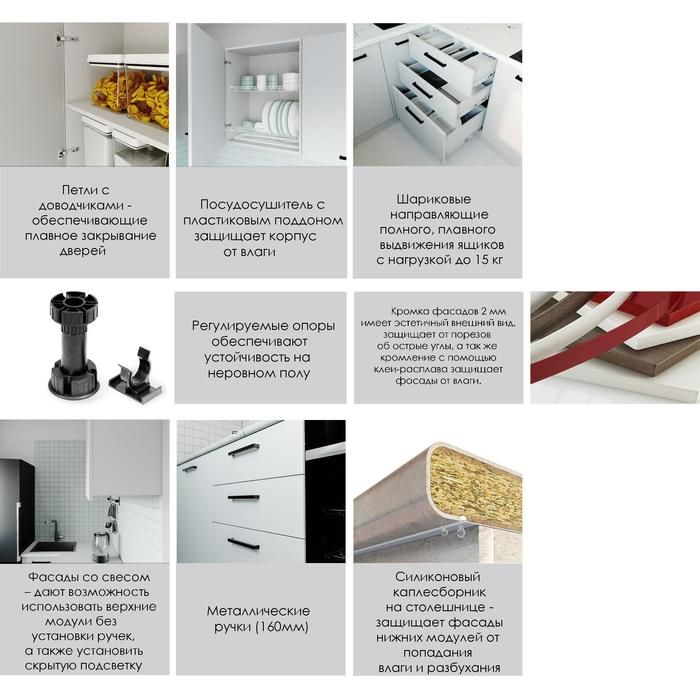 - Глубина нижних модулей без учёта столешницы: 450 мм.
