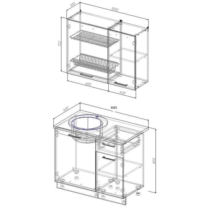- Глубина верхних модулей: 300 мм.