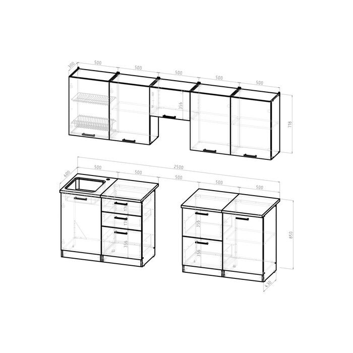 - Тумба под врезную мойку: 500 x 600 x 850 мм.
