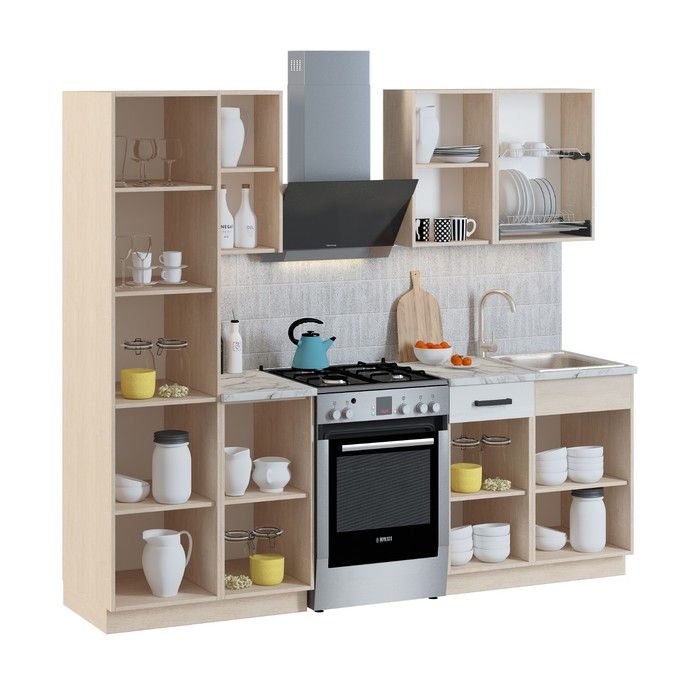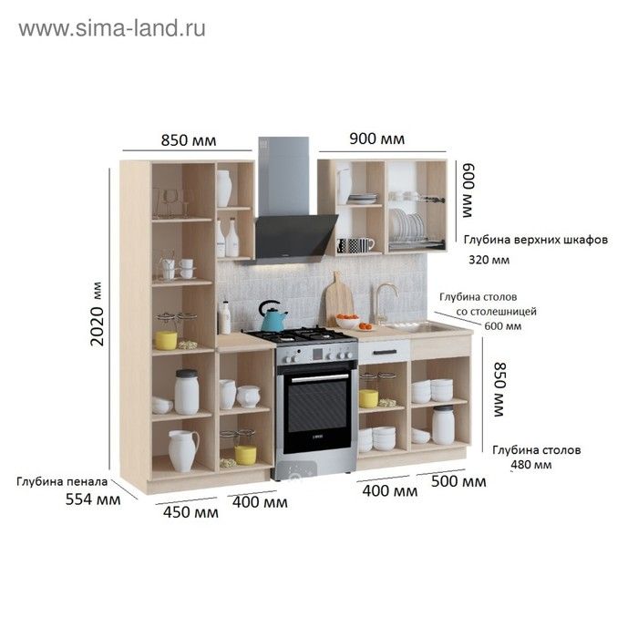 К данному гарнитуру подходит накладная мойка размером 500 x 600 мм и посудосушитель шириной 500 мм.