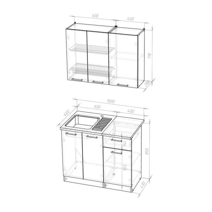К данному кухонному гарнитуру подойдёт решётка посудосушителя шириной 600 мм.