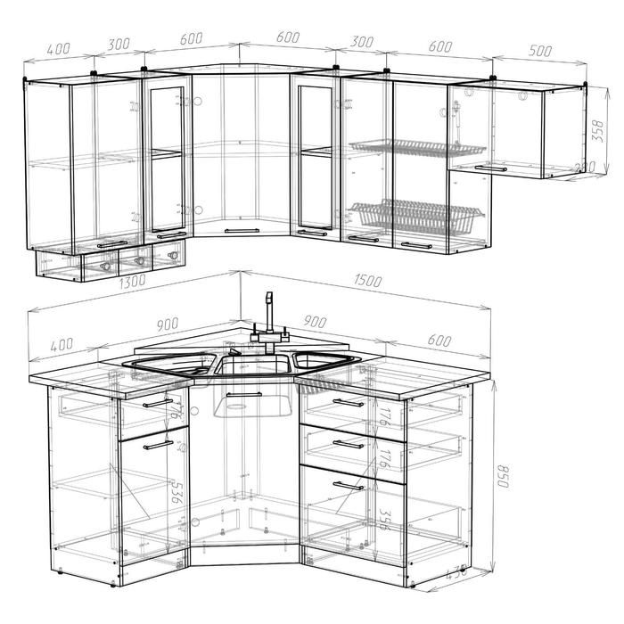 К данному кухонному гарнитуру подойдёт решётка посудосушителя шириной 600 мм.
