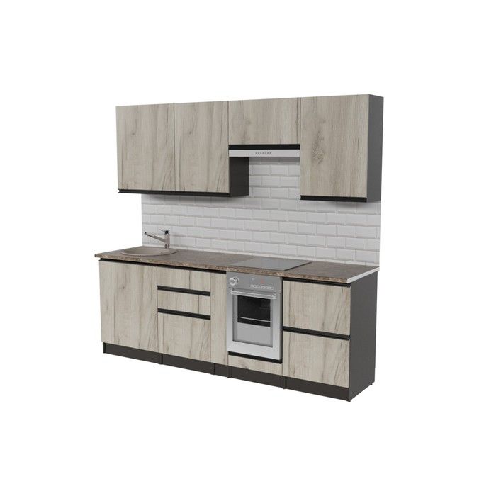 Кухонная мойка, стеновая панель, решётка посудосушителя в комплект не входят.