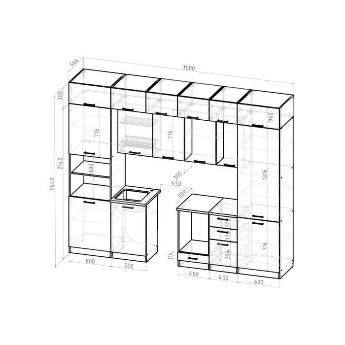 Мойка, смеситель, посудосушитель и бытовая техника в комплект гарнитура не входят.