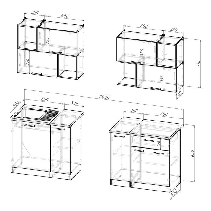 Кухонный гарнитур поставляется в разобранном виде. Инструкция по сборке и необходимая фурнитура идут в комплекте.