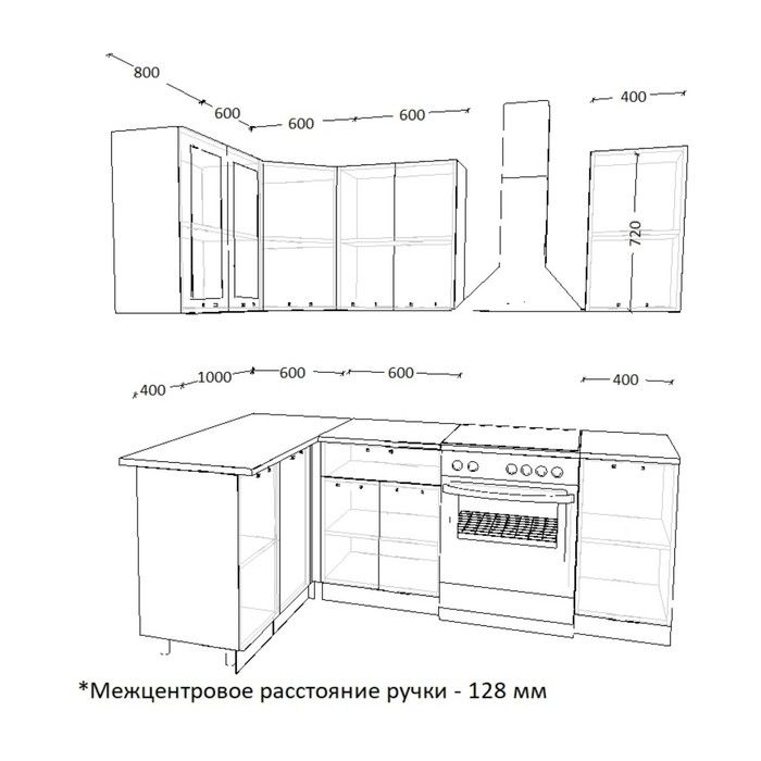 Размер кухни:1600 х 1400