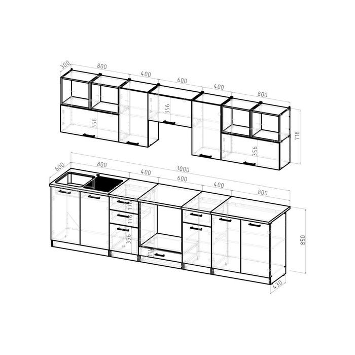 - Тумба под врезную мойку (Ш x Г x В): 800 x 600 x 850 мм.