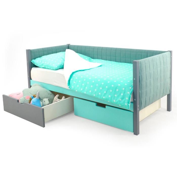 Ящики для кровати, съёмный бортик, аксессуары, декоративные подушки и цветная светодиодная подсветка в комплект не входят. Приобретаются отдельно.