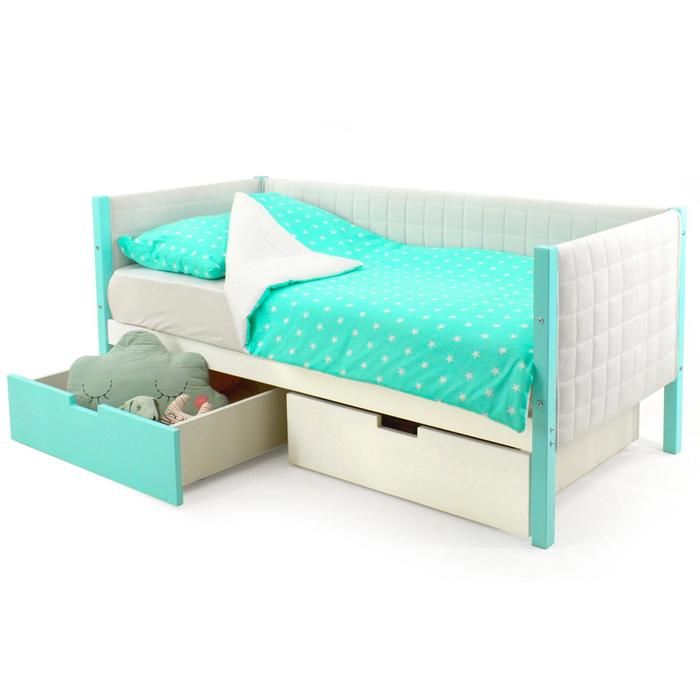 Ящики для кровати, съёмный бортик, аксессуары, декоративные подушки и цветная светодиодная подсветка в комплект не входят. Приобретаются отдельно.