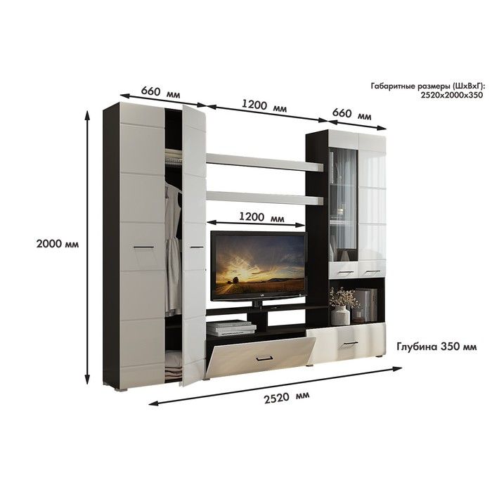 Размер ниши для телевизора:1200 х 895