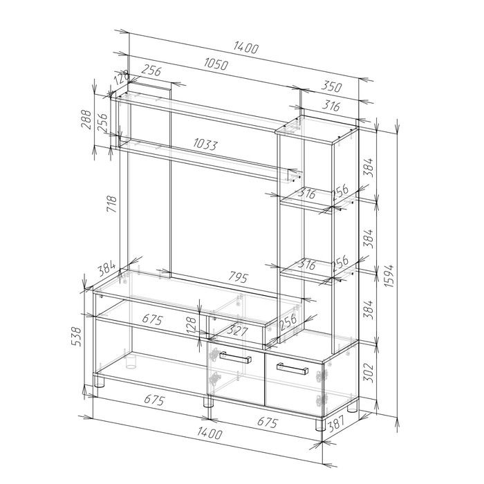 Размер ниши для телевизора:1046 х 750