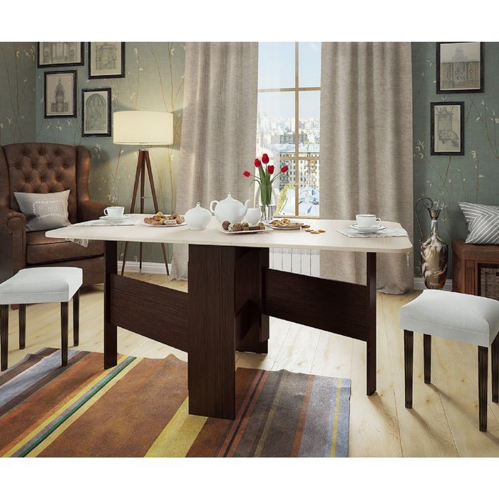 Стол-книжка будет отлично смотреться в гостиной, кабинете или детской комнате. Вы сможете менять размер полезной площади столешницы, открывая или закрывая соответствующую панель модуля. Используйте его для учёбы, работы за компьютером, для рукоделия и другого.