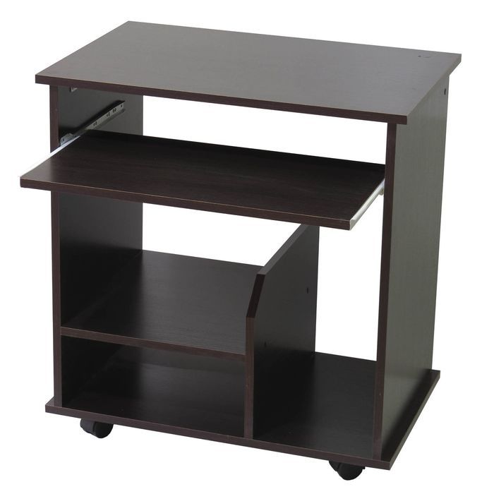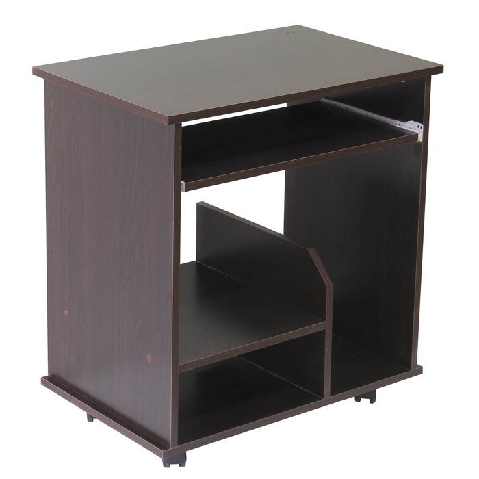 Стол оборудован выкатной полочкой для клавиатуры, а также полкой под системный блок и принтер.