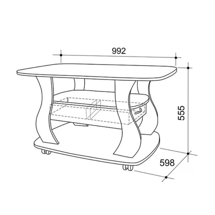 Данный журнальный столик украсит вашу гостиную. Он компактный и удобный. Используйте предмет мебели как подставку для светильника или место для хранения книг, журналов и пультов от бытовой техники. Модель также подойдёт для небольшой трапезы.